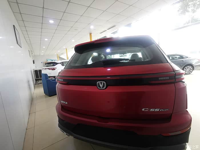 红色的CS55plus蓝鲸,时尚靓丽的外形显得特别年轻