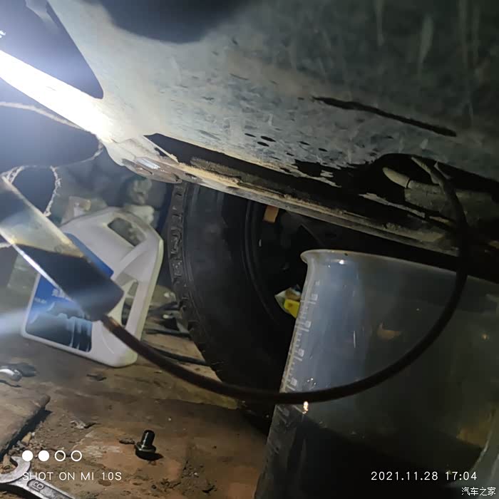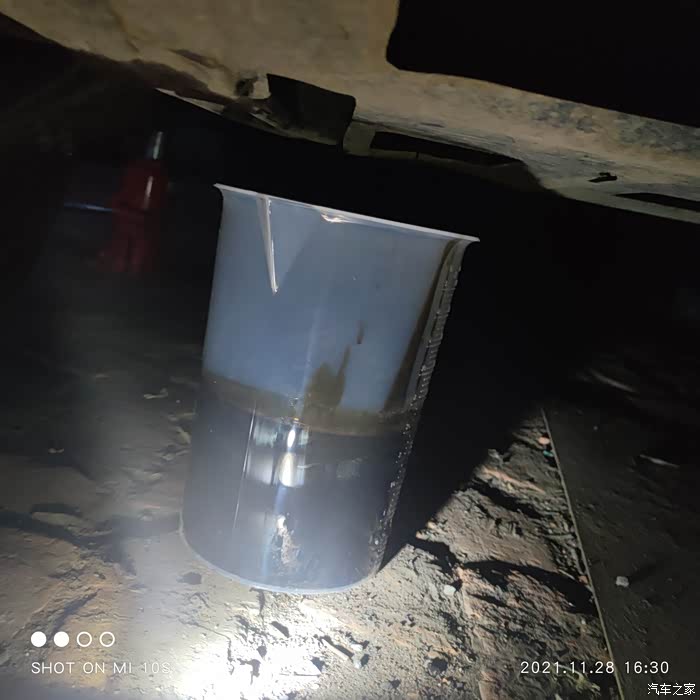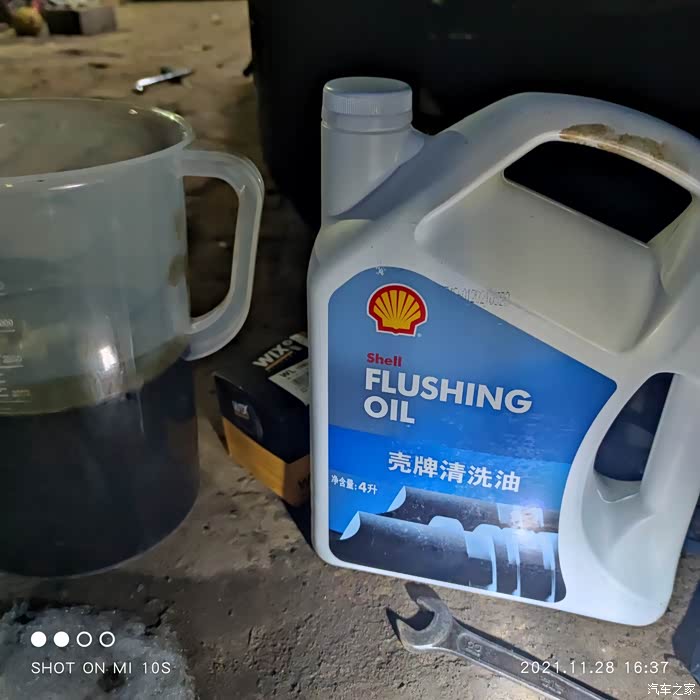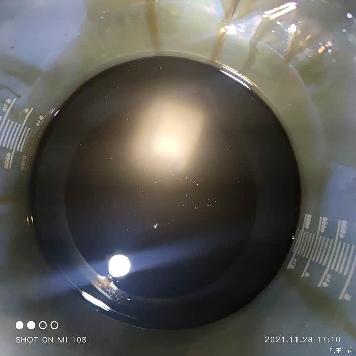 这是放出来的清洗油,10分钟就变成了这样,的确洗出了很多油泥,但是清洗油太稀了,跟水一样