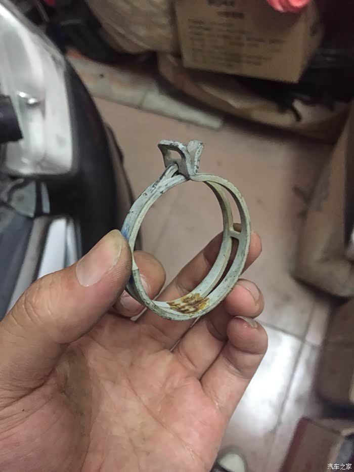装上,我没有密封胶,就抹了一点点黄油在座子上,黄油也是可以起到很好的密封作用,别抹太多,一点点就好,也不要抹在管子上。再把卡子卡好,否则会漏水