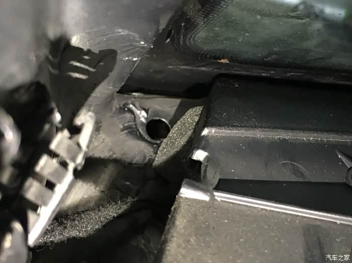 拆开a柱装饰板,仪表台上的喇叭熟料网也拆下来,然后可以看到下图的密封塞,把它拿下来,就可以看到这个洞了