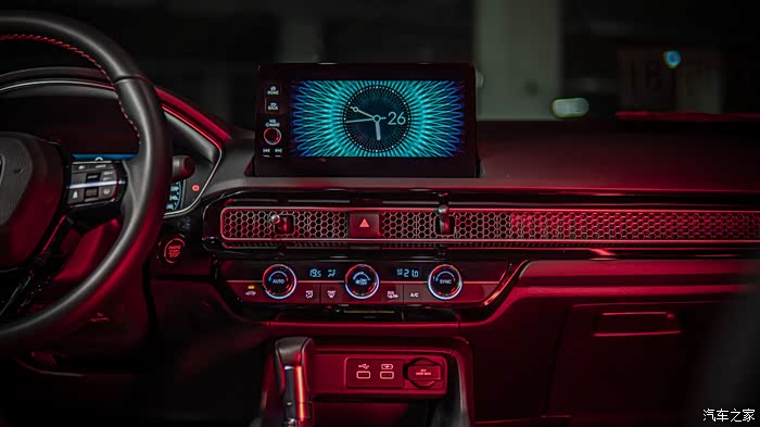 与新能源汽车相比,燃油车在科技感氛围方面始终处于落后,但思域却打破了这一现象,内饰营造出科技座舱的既视感,蜂窝状空调出风口搭配大尺寸的悬浮式中控屏和液晶仪表盘,高级、智能,再多的赞美也不为过。空调实体按钮扭动的声音很清脆,相当有质感。