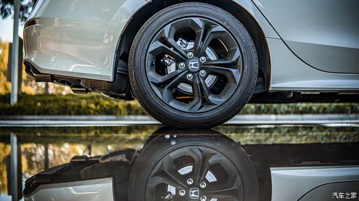 侧面一条硬朗的腰线贯穿整个车身,线条丰富饱满,十分动感。车漆晶莹剔透,看上去更显圆润,丝毫没有廉价感。并且十一代思域的车身尺寸和轴距均进行了增长,整车也依旧做了大量的熏黑处理,给人更加大气的感觉。17寸花瓣造型的熏黑轮毂,更符合它所散发出的优美气质。