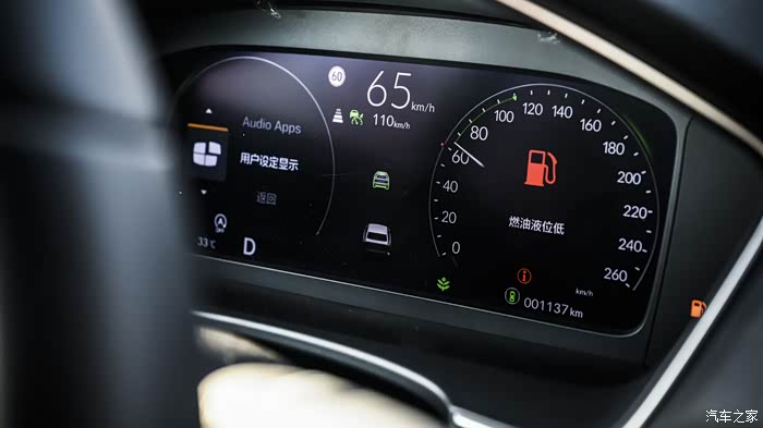 开启定速巡航后,仪表盘会显示出前方和左右两侧的车辆画面,它还支持并线辅助和低速跟随功能。在遇到堵车时听着歌,开着主动巡航,烦躁的心情渐渐消散。但它也有弊端,容易被人插队,这点我个人不是很喜欢,对于不介意这点的车友还是很实用的。