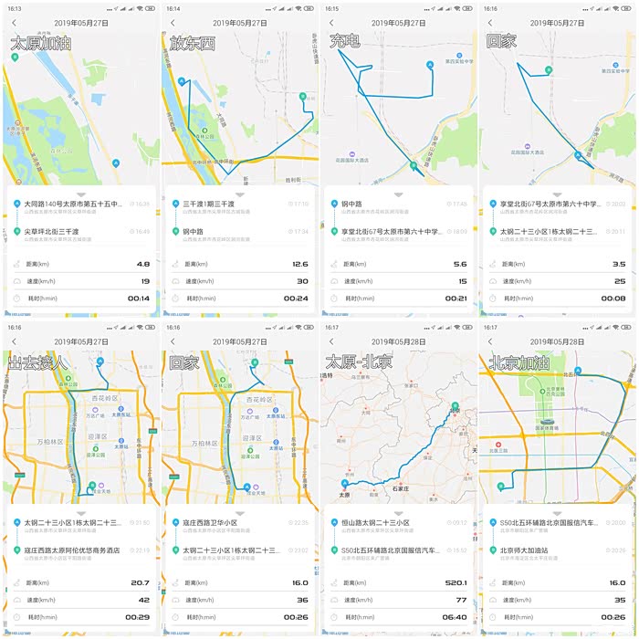 注:期间充电一次,但电量在太原市区几乎耗完,上高速后全程属于馈电状态。