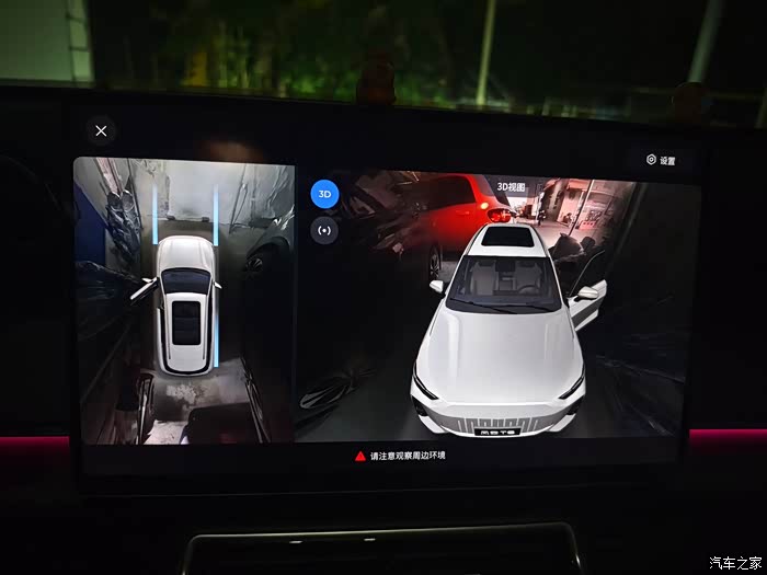 第三个是360全景影像,买车一定要选这个配置,这个功能太实用了。在过窄路的时候,我们可以通过360查看侧裙两端和车轮两端的障碍物,及时的避开障碍物防止车身剐蹭。也可以通过360全景影像在会车或者倒库的时候起到辅助作用。