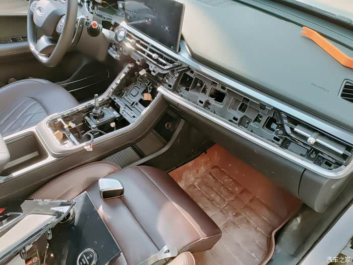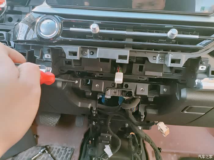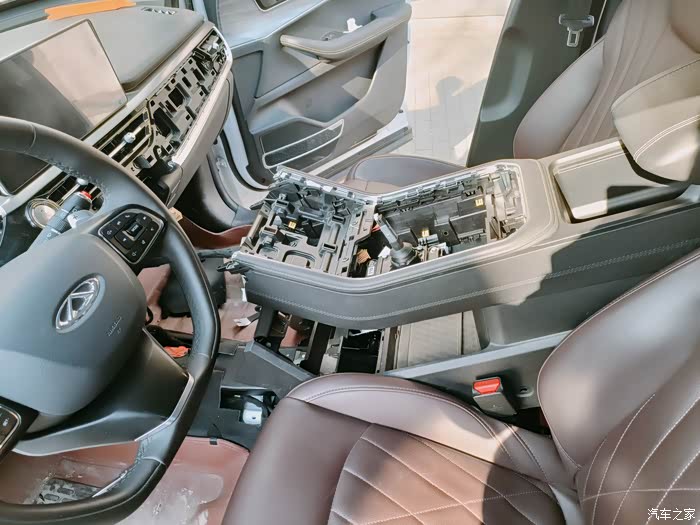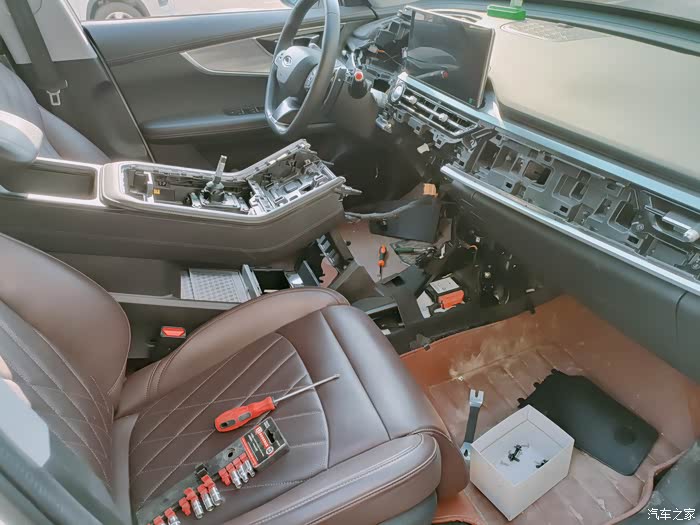 对于升级车联网主机,拆卸中间扶手箱必不可少,车联网主机被深深地隐藏在内部。