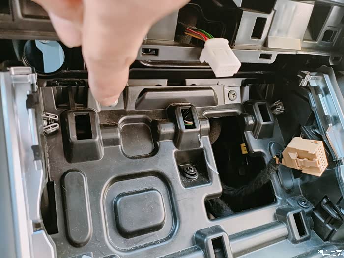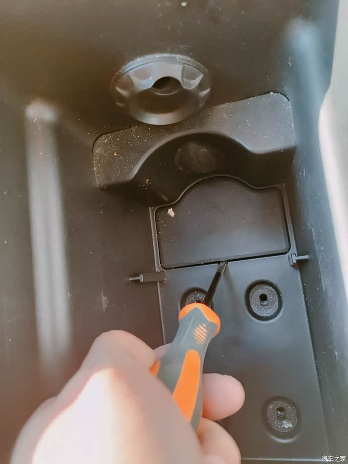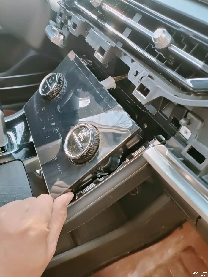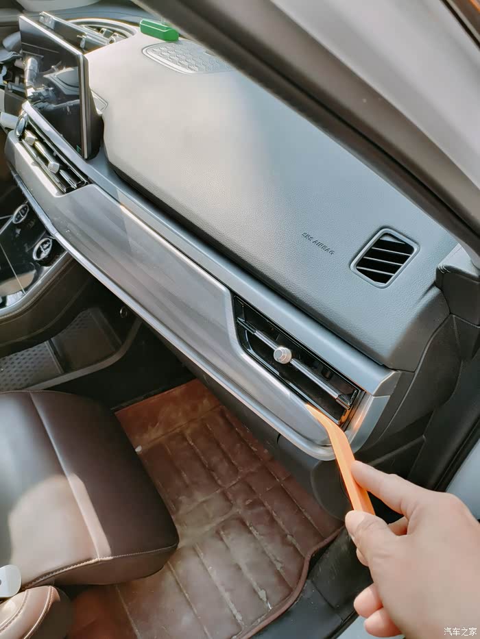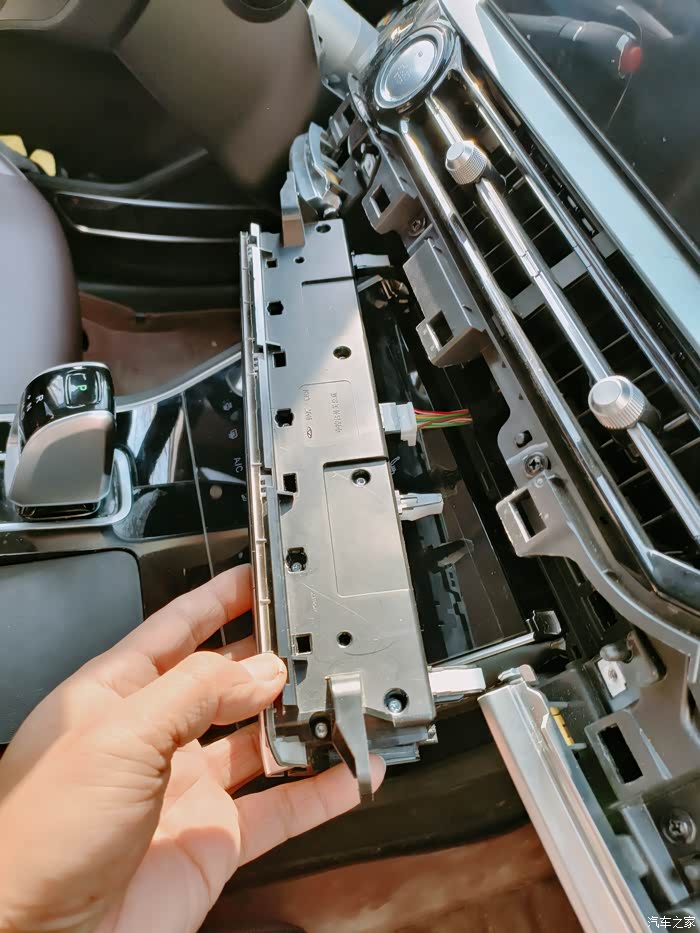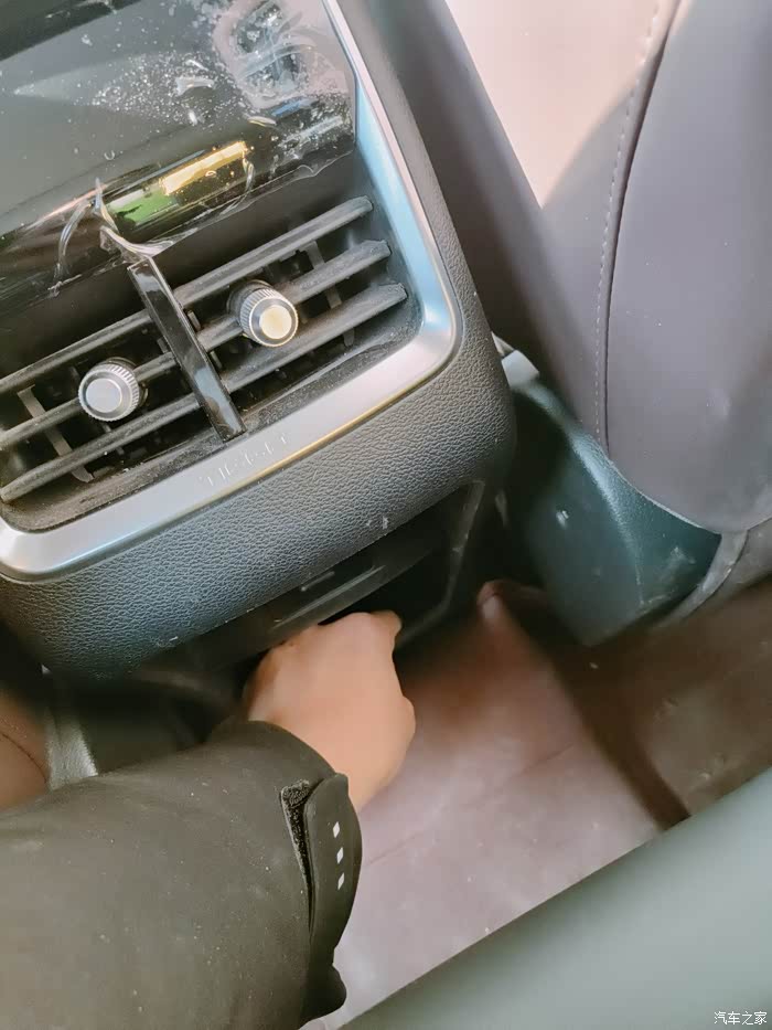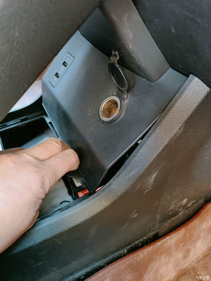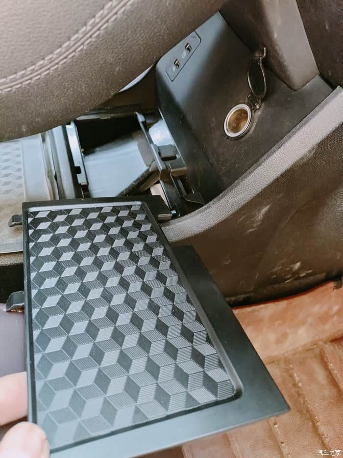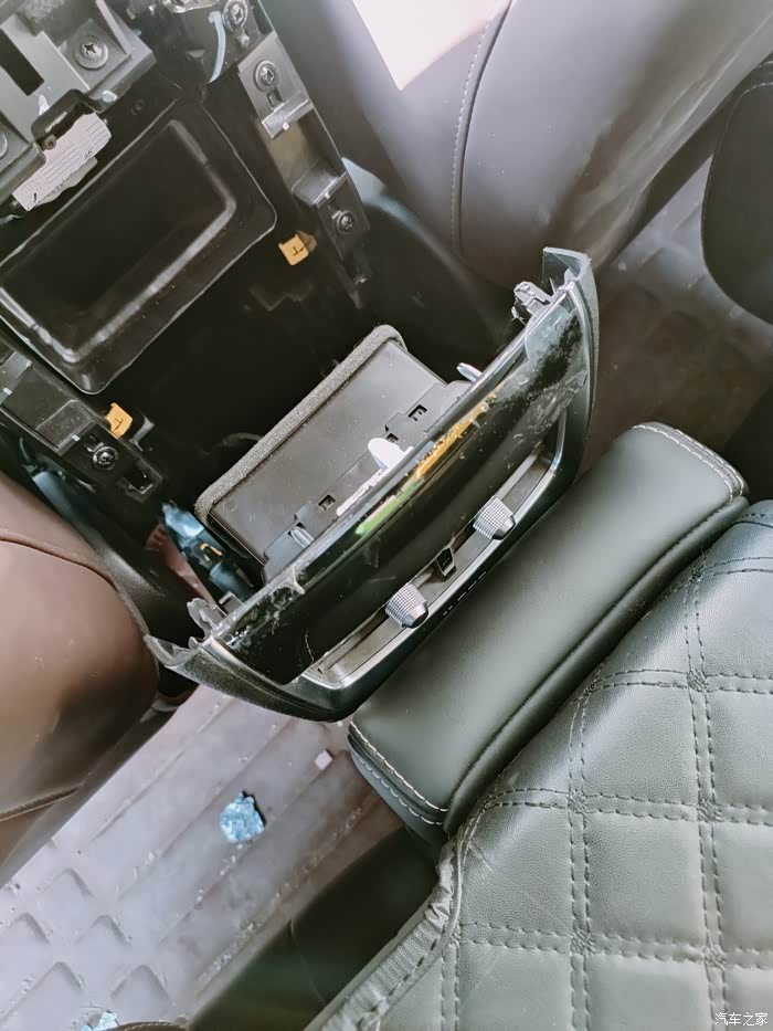 第三,后排出风口水平用力拉下面储物槽就可以打开,里面有usb的线束拔掉,侧壁还有个固定线束的卡扣切记切记要解除.