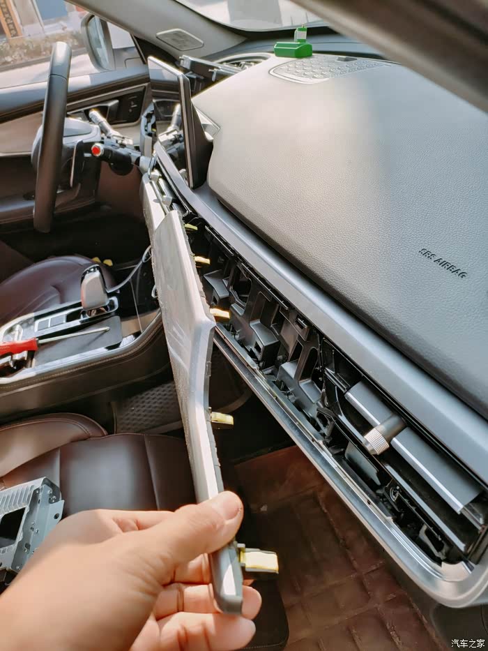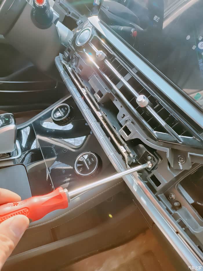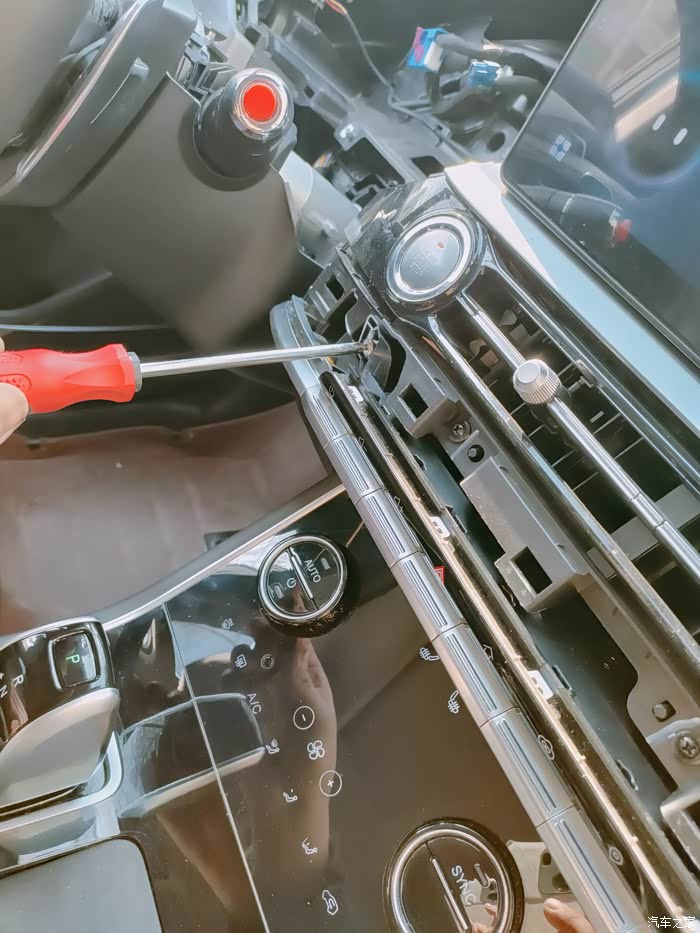 第一步拆掉这个中控台上的饰条