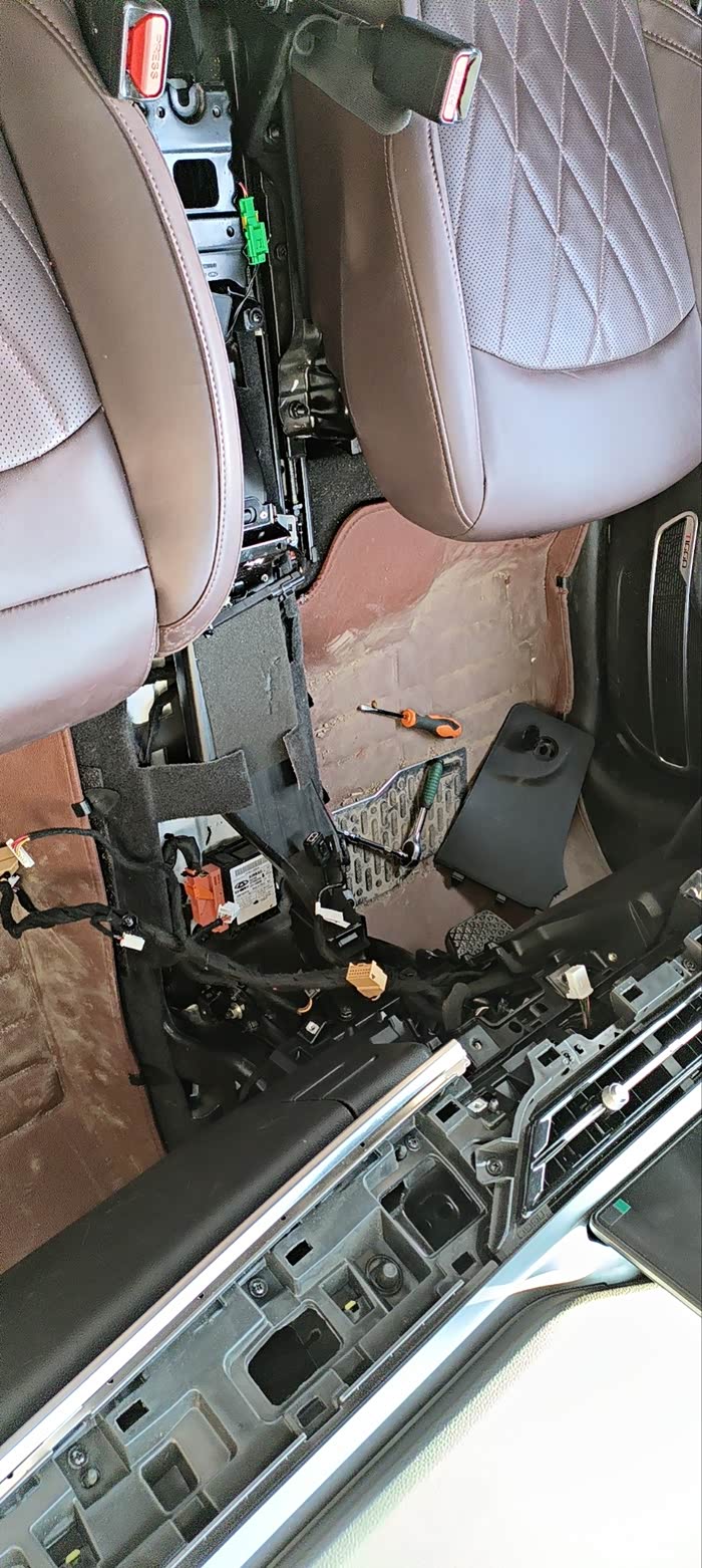 拆开以后的样子!有些升级记忆座椅的也可以从这里穿线过去