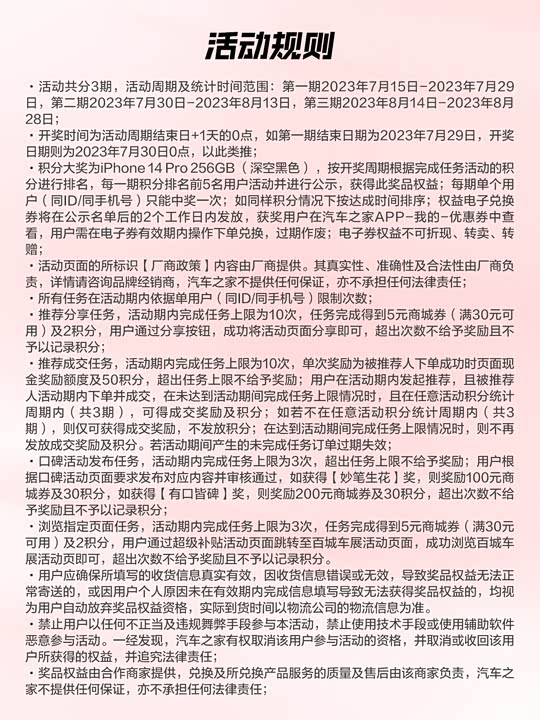 活动共分3期,活动周期及统计时间范围:第一期2023年7月15日-2023年7月29日,第二期2023年7月30日-2023年8月13日,第三期2023年8月14日-2023年8月28日;