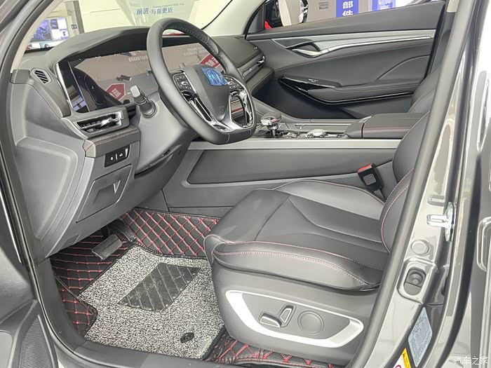22款的75plus的内饰还是两款颜色,纯黑和红黑,黑色的要稳重一些,红黑可能更有活力,黑色内饰中控、门板采用高光黑的一个设计,有点质感