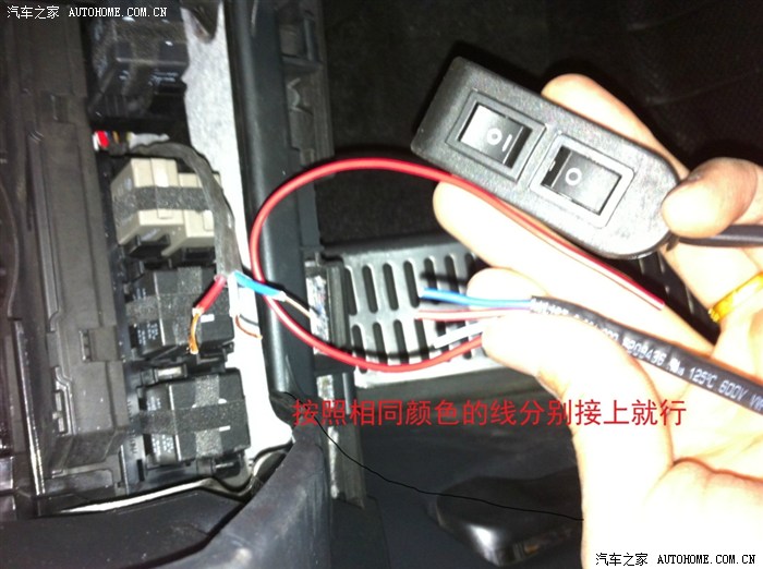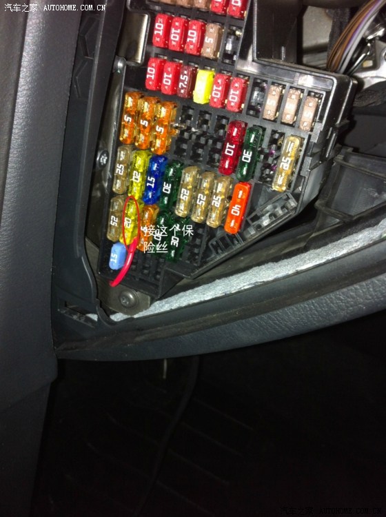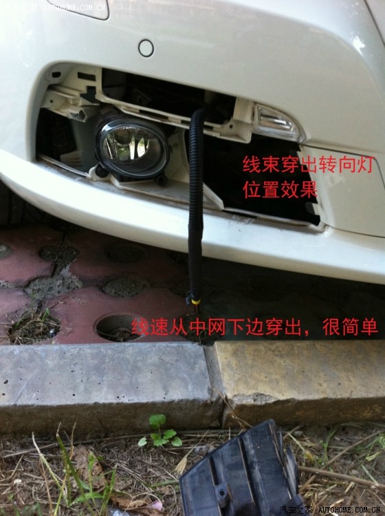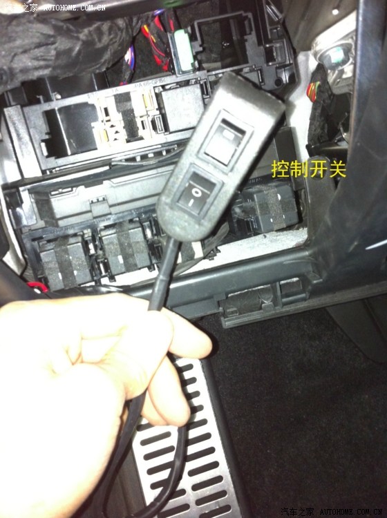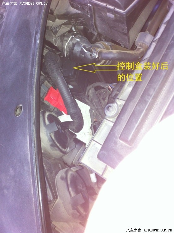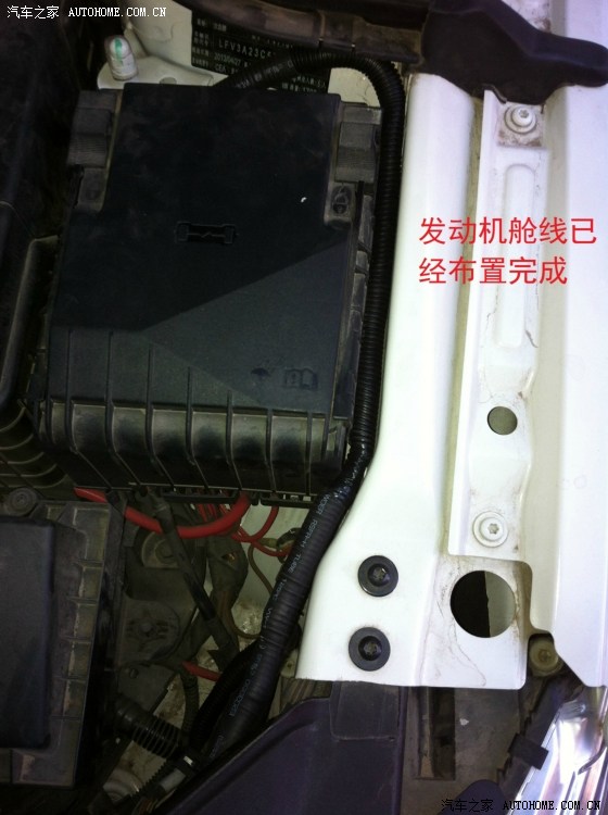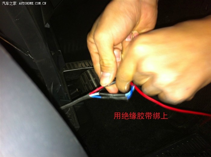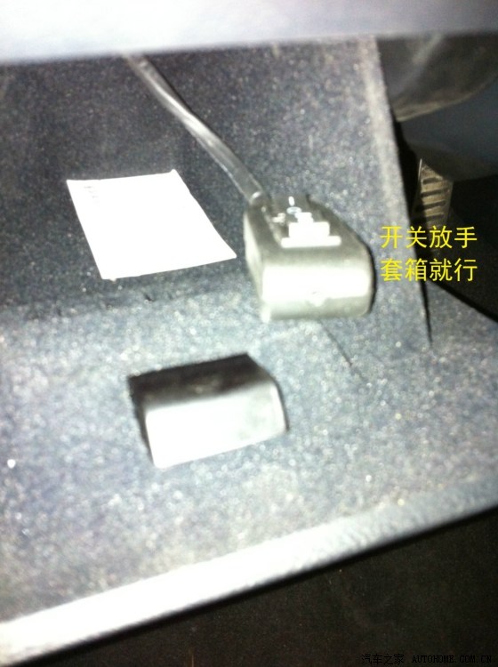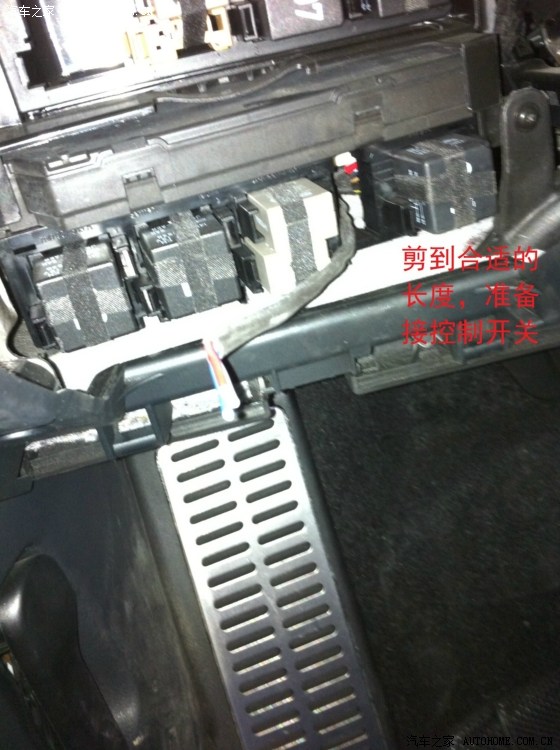 从驾驶室刹车踏板左上方的孔穿铁丝进去,铁丝会从电瓶和行车电脑中间缝隙出来,这一步忘记拍相片了……