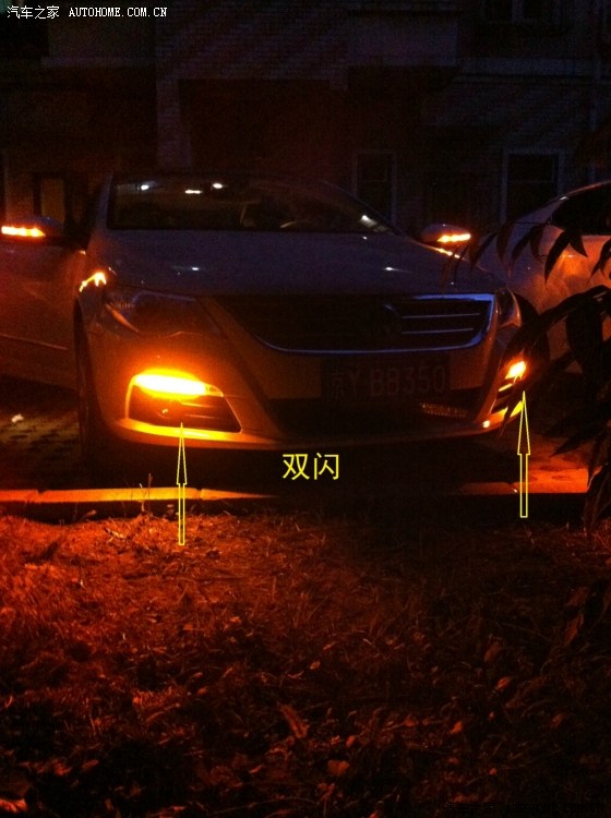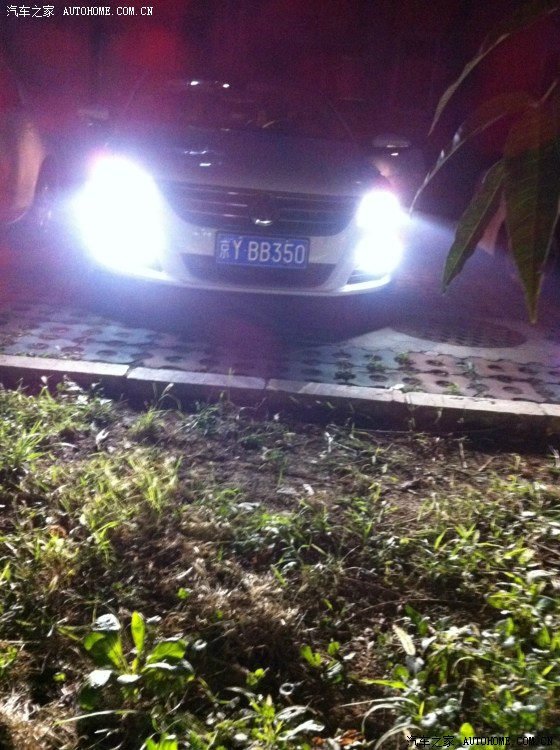 通电后一次点亮,由于车是侧着停的,旁边又有棵树,所以看的效果不好,请各位小伙伴们谅解!