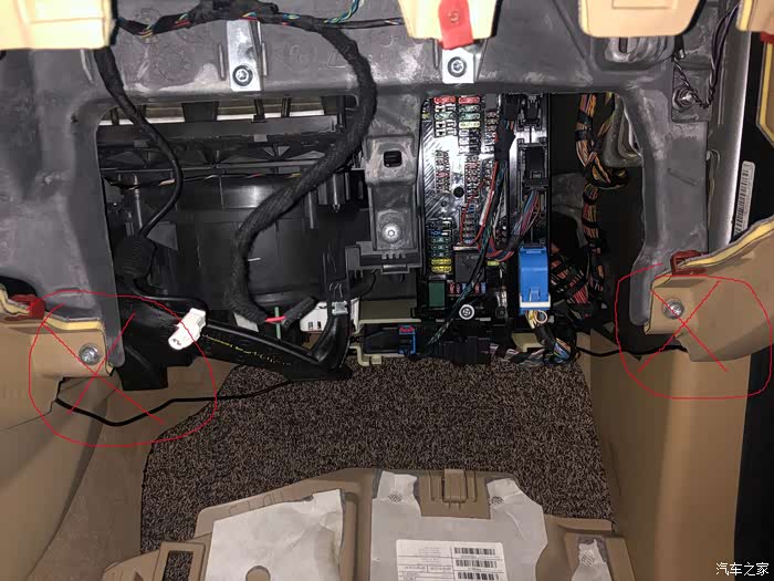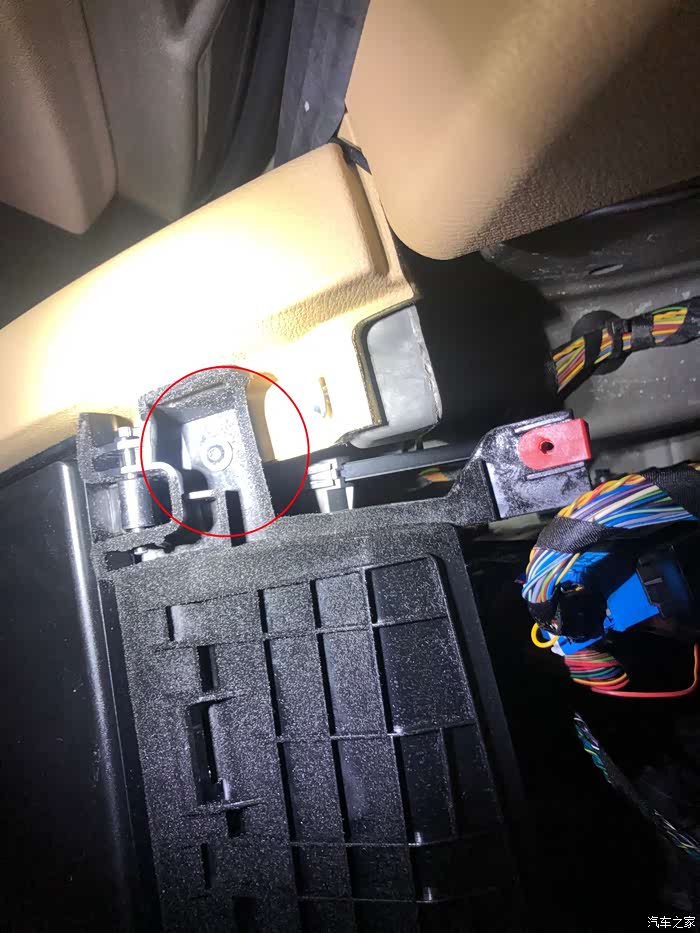 其次需打开副驾驶门爬下来,找到底板的三颗六角形螺丝,转下来把底板取下。
