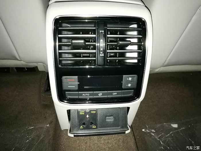 后排独立空调,不过风量怎么不能独立控制!还有强制加装的USB插口,220v电源都在这,就不能标配?