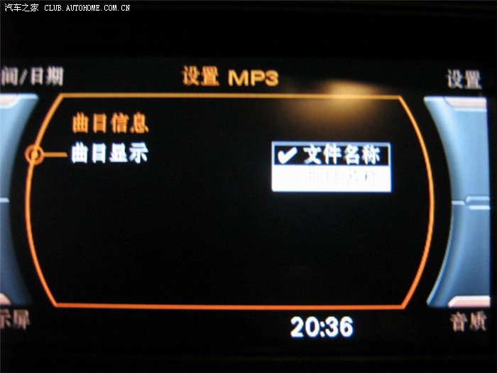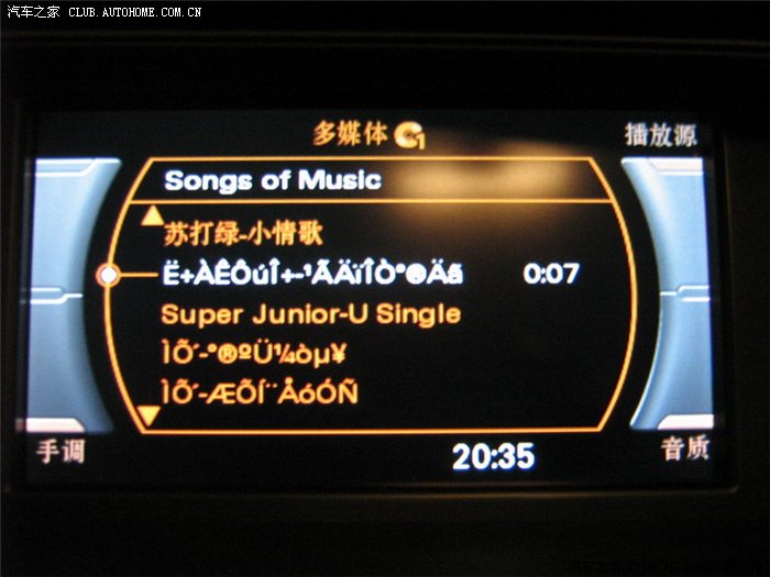 A4L的CD显示屏幕,歌名出现乱码,很心烦,看乱码都找不到要听的歌。明明复制到存储卡上的歌名字是中文,到车上确显示成了乱码。