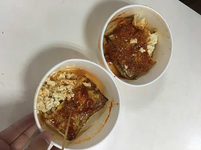 中饭就这样简单的两碗臭豆腐草草了事,雨天还是要抓紧赶路!