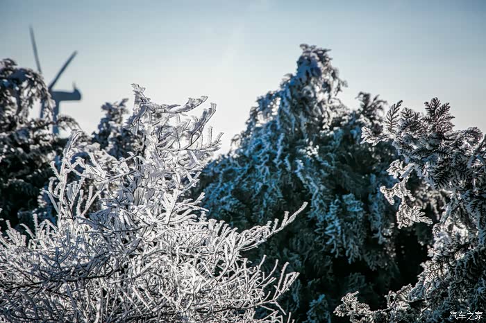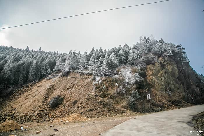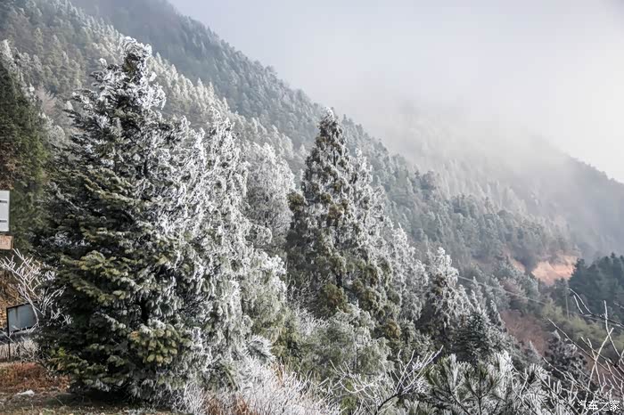 在一边兢兢战战的开车,一边则是注意到了山上的树木已经被皑皑白雪所覆盖,看了下温度,室外已经接近0度,而我们在临海市里面可是有将近15度啊~~