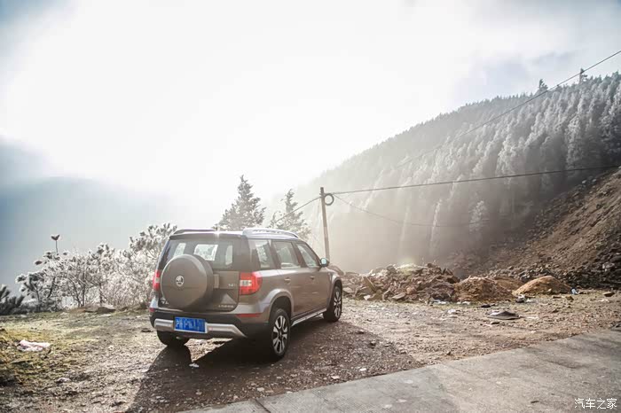 路面已经结了霜,油门踩深还有点打滑,还好及时介入了,选中四驱,就是要在这种关键时刻派上用场,就像之前的山路一样,虽然四驱并未真正用到,但是它带给我的这种稳重和扎实感还是让我定心不少。既然说到这了,也顺便说说Yeti的初次跑山感受,油门的反应不像有些增压车型会有点突兀,总体还是挺线性的,比较好上手,刹车同样。底盘和悬挂的话,还是浓厚的德系车味道,很扎实,一点都不虚,不知道这是不是还有配备了四驱的原因。跑上山路外加还处于磨合期,油耗10个多点,可接受范围内,下山的时候我记得油耗才跑了8个左右,这次总体油耗9个多点,综合下来的确可以。