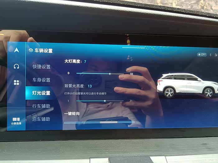 △车机的车辆设置里面也有灯光设置也可以设置大灯的高度