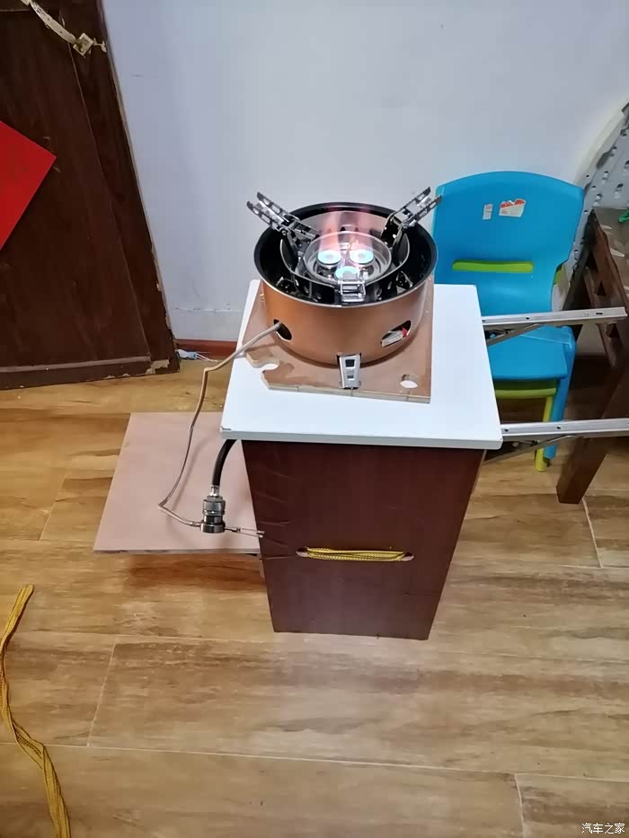 防风燃气灶放进去正合适,配了三米长的防爆燃气管道,提前开了管道孔,可以整体放进柜子里面去,使用时选择合适的位置,机动性很强。
