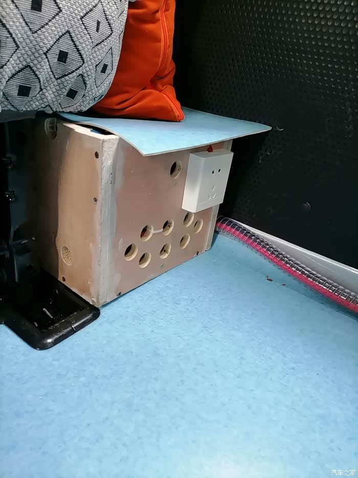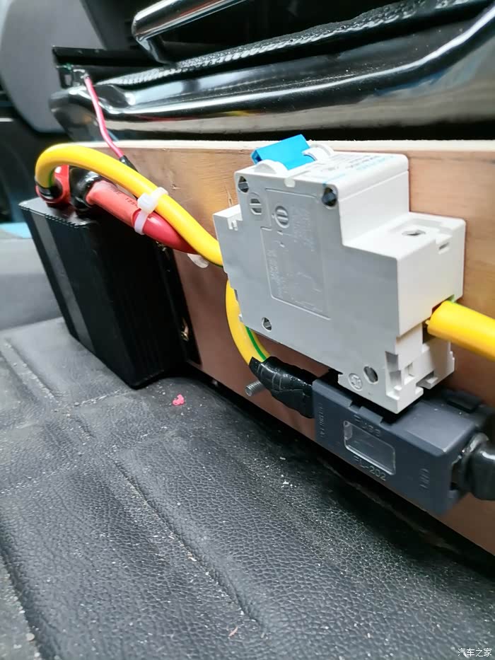 双电瓶隔离器,100安的保险盒,100安的直流电空开,35平方的国标铜线,放在主驾座椅下面,有两个小孔,很合适,无损安装。