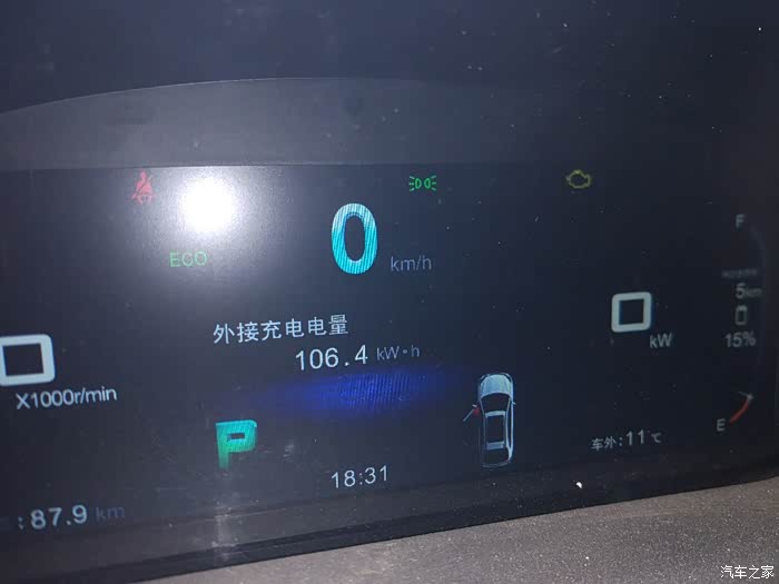 充满了,15%到100% 106.4-90.7=15.7度电,貌似好了很多