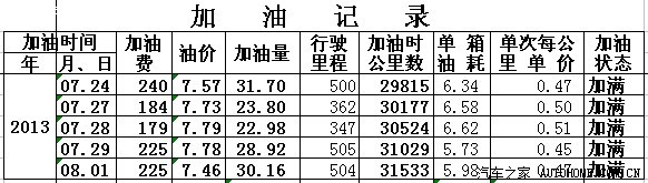 7月25日泸沽湖至云南丽江,由于下雨且绕行山路,上坡多数时间2、3挡跑60(发动机转速4000左右)的速度(同样一路超车无数,直到丽江只有2辆进口四驱越野及1辆广本和1辆大奔未超越,虽未超车,但一直尾随),导致7月27日加油时得出油耗为6.58;