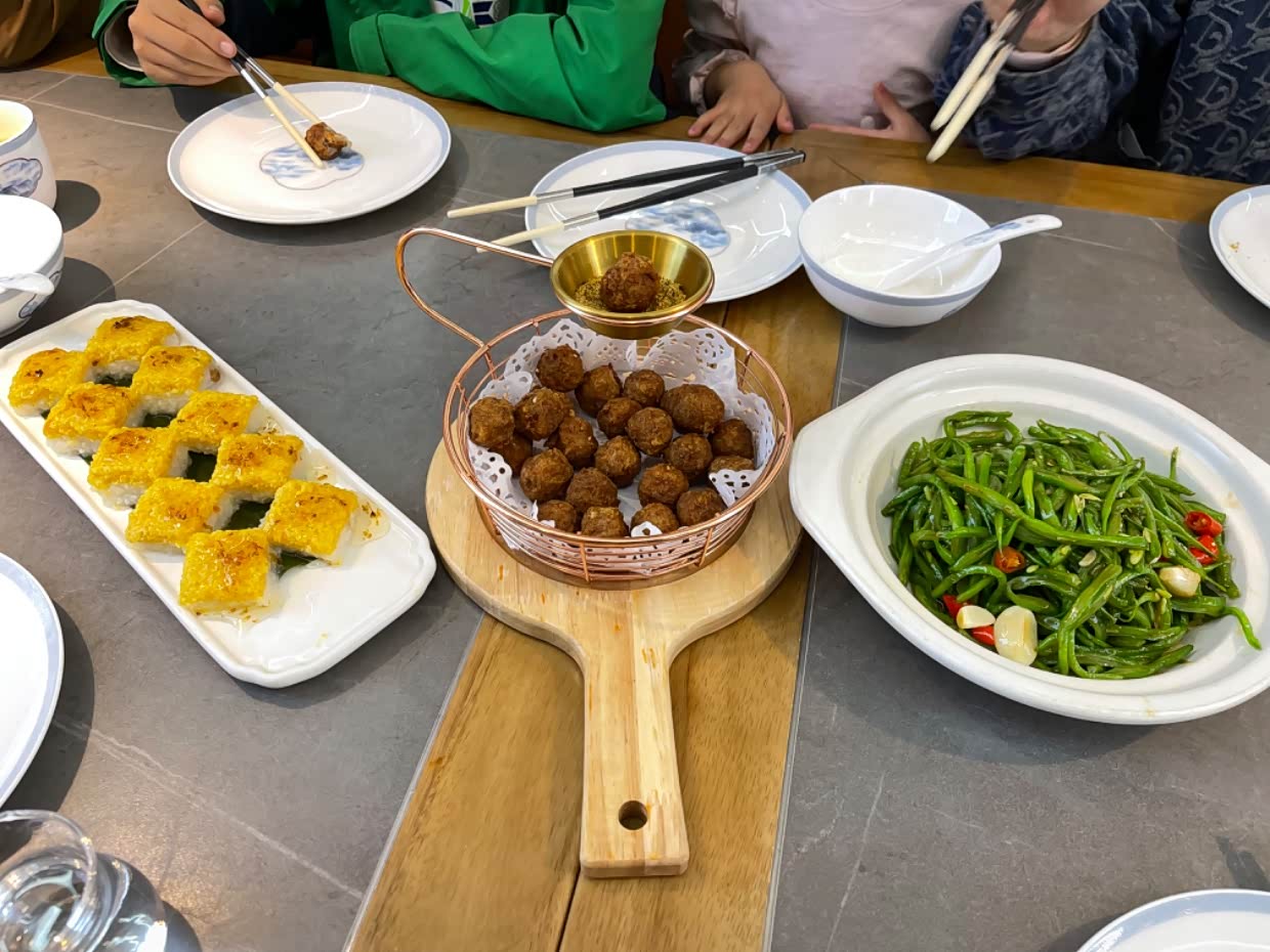 冰粉和油炸牛肉丸很好吃,糯米糕孩子也非常习惯,喝的点山西汾酒