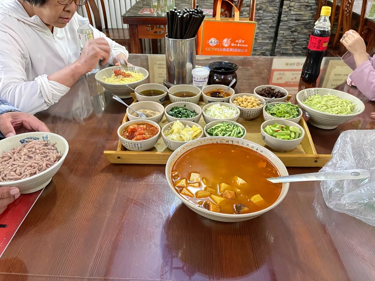 陕西面食仪式感满满,首先上来了13碗的小料和一大碗的汤不同食材的面可选,面看起来很简单,配料确给的很是丰富,可谓面食的天花板,老板还提醒不够吃的话可以续...........