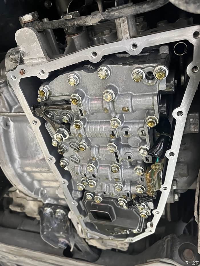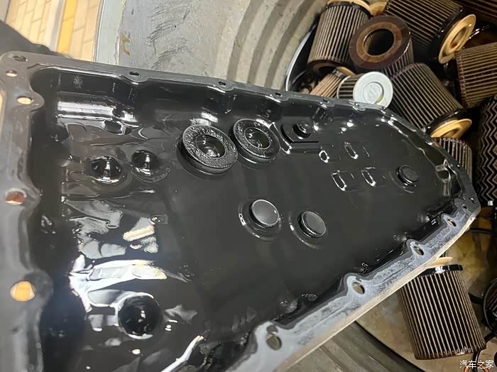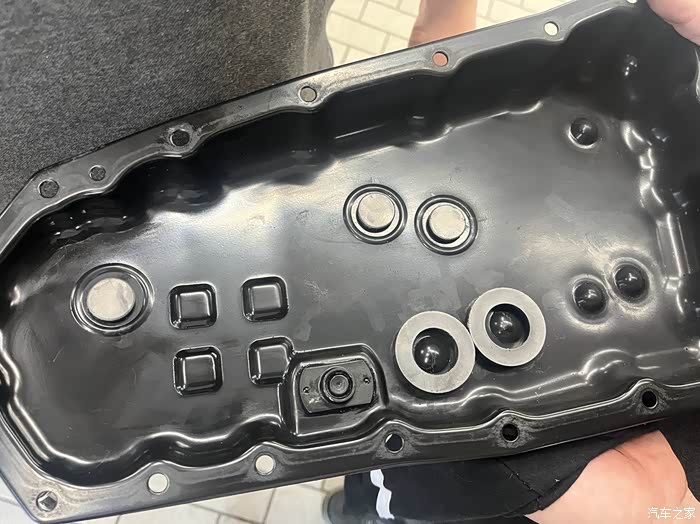 拆下CVT变速箱油底壳,清洗油泥(上面有好几颗磁铁也要拿下来清洗干净)刚换钢制油底壳垫片