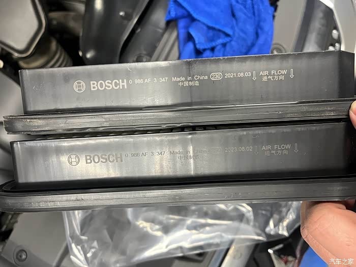 自己换空气滤芯,空气滤芯我一直用博世的,做工和用料比广三原厂的好多了