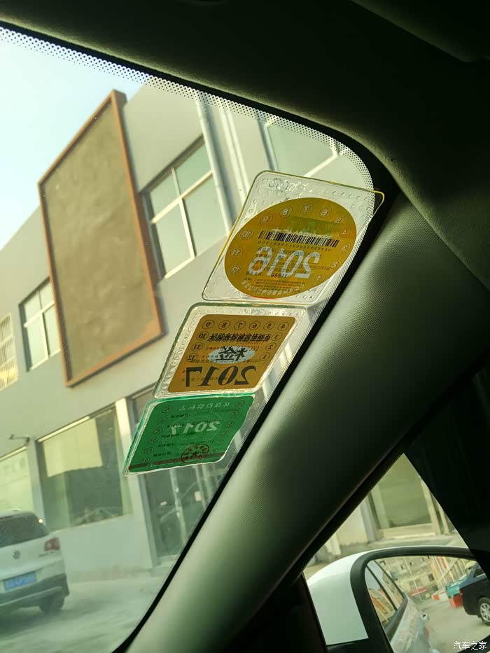 年检贴,这种的优点就是经过日晒后不会留颜色在前档,挺牢固的,到这都没掉下来。