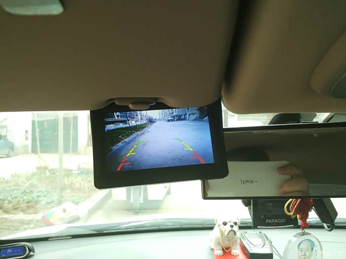 倒车影像 网上淘的 68元 性价比超高 显示器直接固定在 车顶棉上 不影响视线 这种摆法 自己比较满意