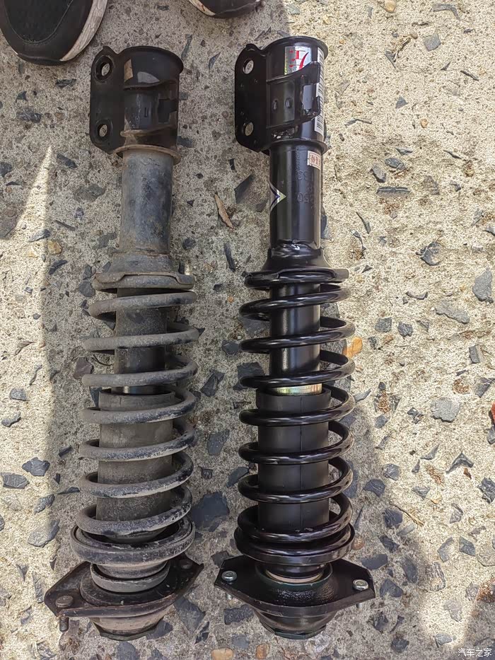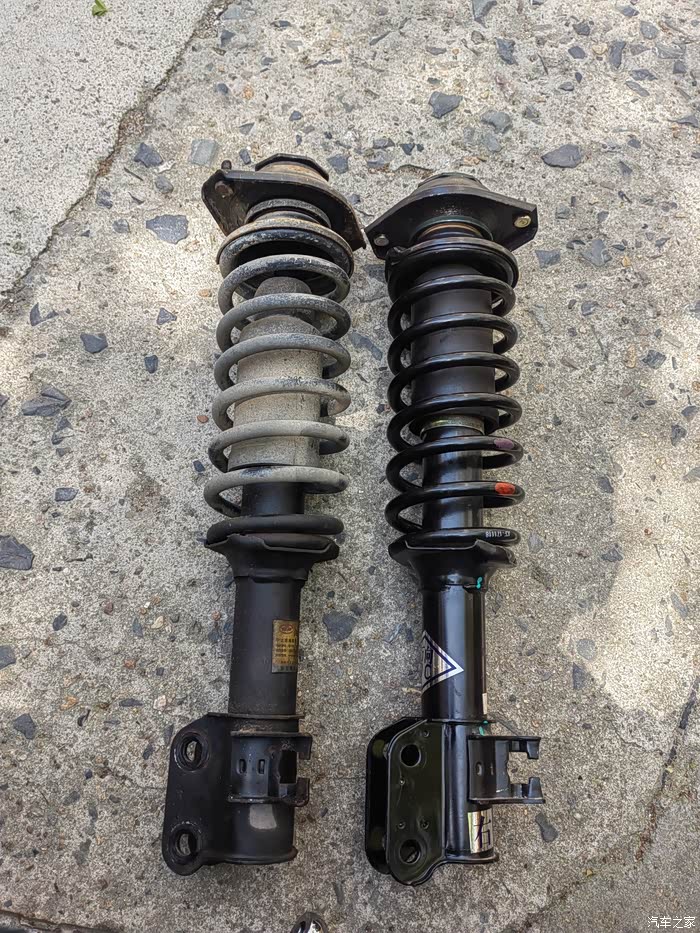 新旧差不多,新的右前减震弹簧上面紫色和红色原点不知道代表啥