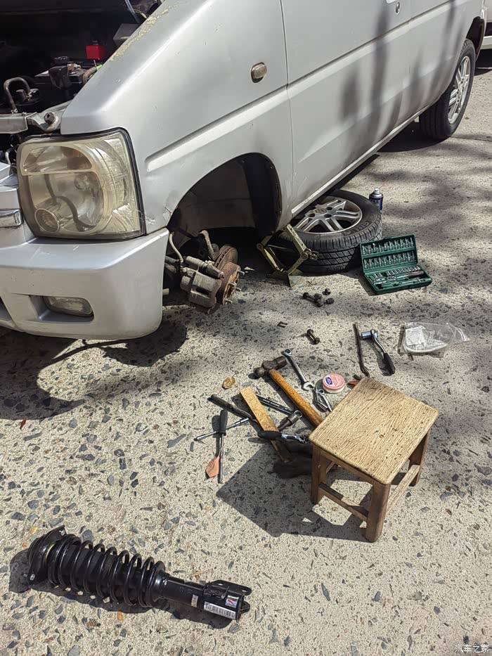 2小时修复千斤顶,3小时更换前减震总成,看起来就是几个螺栓,实际上各种困难,精疲力尽。现在想想,很多时候给修车师傅弄也值得,人家其实也很辛苦。