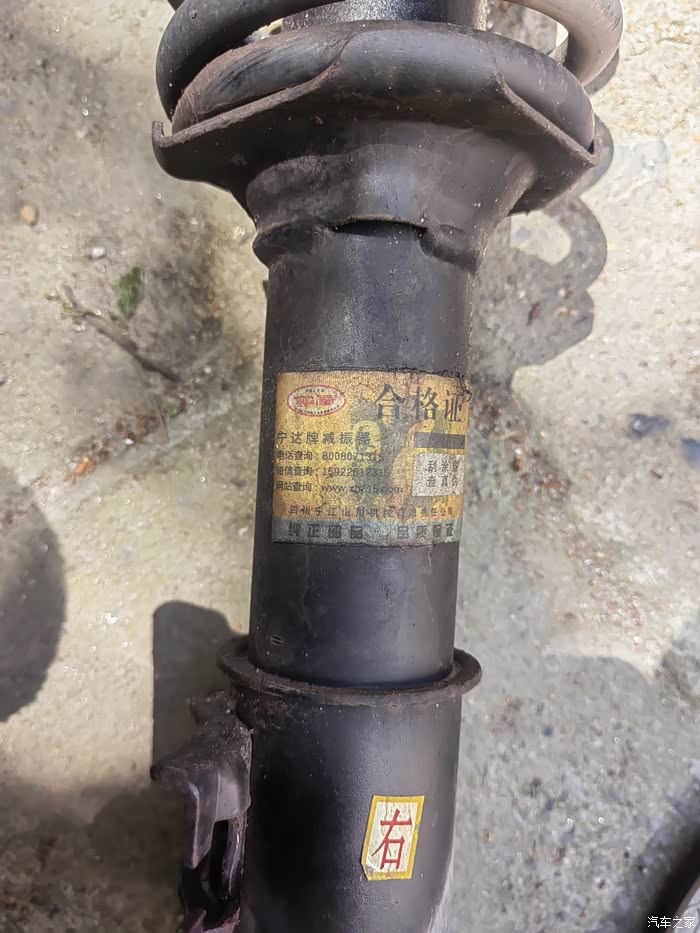 损坏的右前减震是“宁达”的,可能不是原装