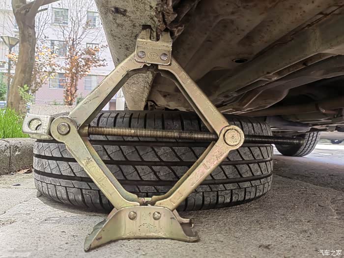 接下来用修复的随车千斤顶顶起