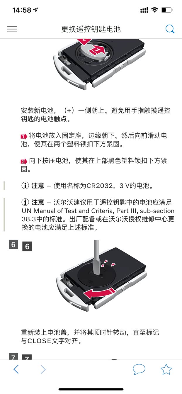 打开Volvo manual查询到钥匙的电池型号是CR2032。这个是很常见的型号,基本上超市对便利店都有得卖。
