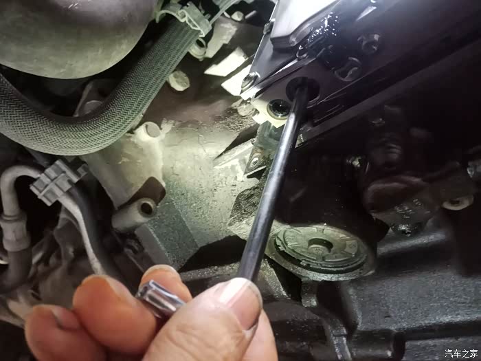 打开变速箱前侧盖板,四颗螺丝。