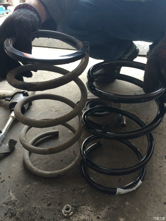 对比一下原装弹簧和rsr的高度,光看着弹簧好像降下去挺多的。这个时候还是有点怕降了太多的。