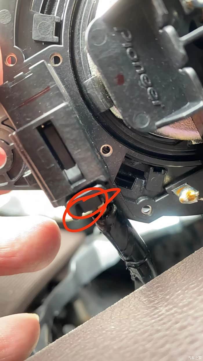 漏出中置喇叭,把喇叭与原车插头拔出。需要按着往下压拔出插头。