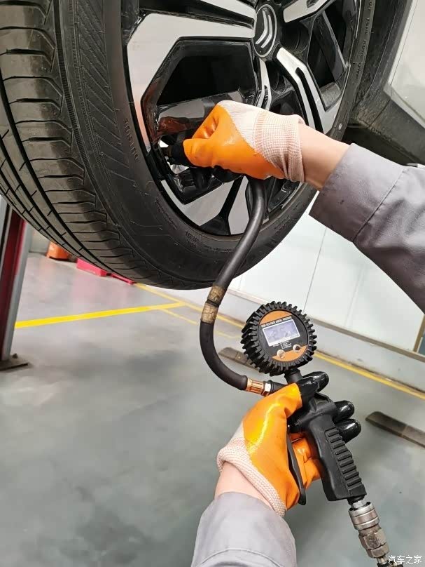 检测四个轮子的胎压,轮胎关乎到驾车的安全,所以正常的胎压是非常有必要的。