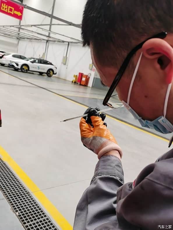 这个师傅看这个机油尺,我觉得他是从眼睛上框里看的,别问我为什么知道,因为我也这样,这样看近处的东西时看的清楚。