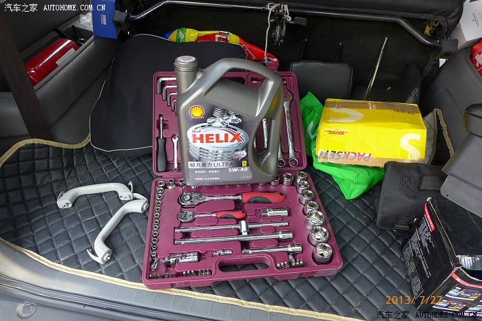 假皮坐垫(4S送的),液压千斤顶(100元),99件套修车工具(360元),不带GPS芯片的测速电子狗(500元,这个超好用,任何地方都行,尤其是洞子里面,比起导航一体的好很多)。吉吉头枕(100元),底盘水箱防撞钢板,注意是钢板,不是塑料的哈,价格200元,发动机防撞钢板200元,这是2样东西哈,一个水箱防撞,一个是发动机防撞。水箱防撞必须的,发动机防撞长期走烂路的可以装。