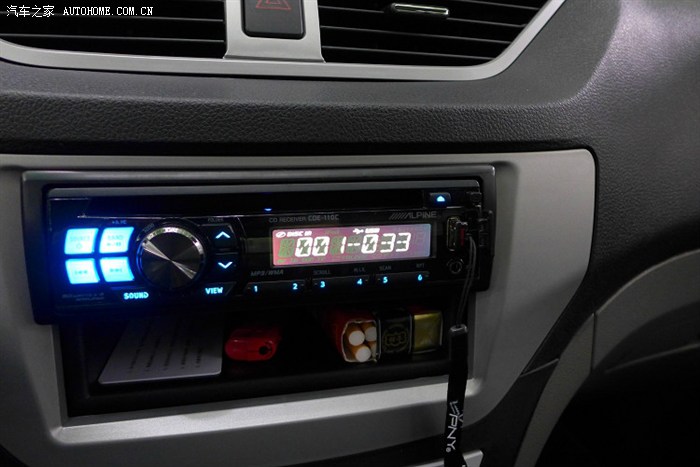 7 CD机(阿尔派的650元),这里先说明一下,很多车友会问为什么不装导航一体机,应为以前长安车上有一台新科的便携式导航,不想浪费了,所以就没有装,在说了本人对驾车的技术还是很有信心,所以至今没有装倒车雷达等,在者由于新款森雅的中控储物盒很少,觉得不是很方便,所以装了个CD机,CD机下方留了一个储物格可以放点小东西。