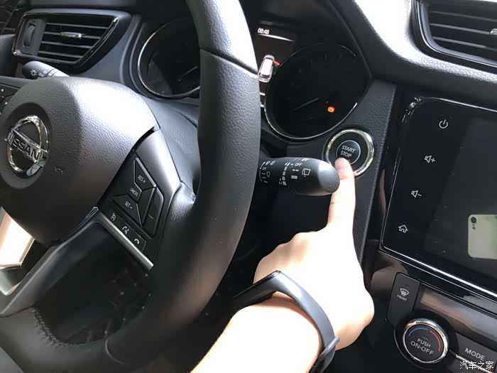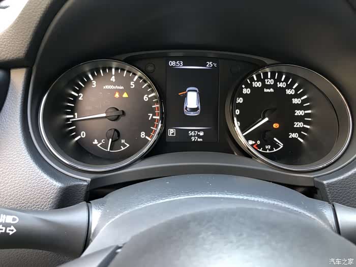 奇骏这款车还自带道路辅助和车道偏离预警系统,靠近的时候旁边的灯会亮黄色的警报。