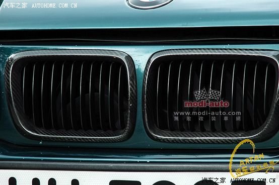 去掉电镀中网饰条,替代上黑碳纤维式样,衬托M3狠的性格。