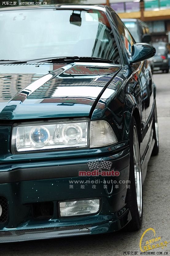 如果上述的只作为接下来要出场E36 M3作铺垫,但对于我们这次带来的属1996年后期版M3,大家同样叫作M3,不过大胆的说一句,上面的M3在她的面前只能称之为普通产品。皆因本车的引擎已经易名为S52,直六布置引擎排量已经提高至3.2L,进气系统升级至进排气双侧Dual-VANOS,引擎内部活塞口径冲程、压缩比等细项设定已有所变更,帮助引擎爆发321hp超强马力输出!另外,全新配备上M3史上稀有的六速手波箱传动等系统,用密齿比设定配合321匹马力发放,驱动1470kg的身躯(只较前期M3高10kg)所有的升级加起来,想想看,若说前期M3是好车的话,那本次采访到的后期版M3,她会去到一个怎样的程度?或许这只能说同厂的大哥级M5都得忌惮三分了! 老实说,原装E36 M3车身线条便有如刀切般锋利,车主就认为这就是多代M3中的经典之作,不错是有多家汽车改装商家为其开发出专用包围,若硬给它套上改装用大包围,这样一来更多的只会破坏其原装车健硕、硬朗的车身感观。因此车主只在原装包围的基础上,为了营造更高的车身下压力,分别于前保险杠、侧裙、后窗顶、后保险杠等位置,装入稳定车外气流之用的扰流件,而扰流件选用了质量上乘的碳纤维材质,因此有效提高车辆稳定性的同时,绝不增加弹簧负载。另外,不改变车头大灯整体线条,改换成著名的Hella出品的头灯,又可大幅提高大灯照射的范围。