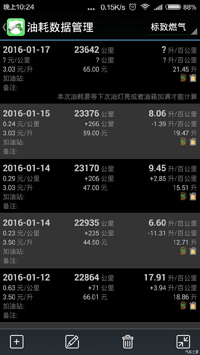 最近的天然气消耗!最后3次是长途!80的罐子!2.0自动